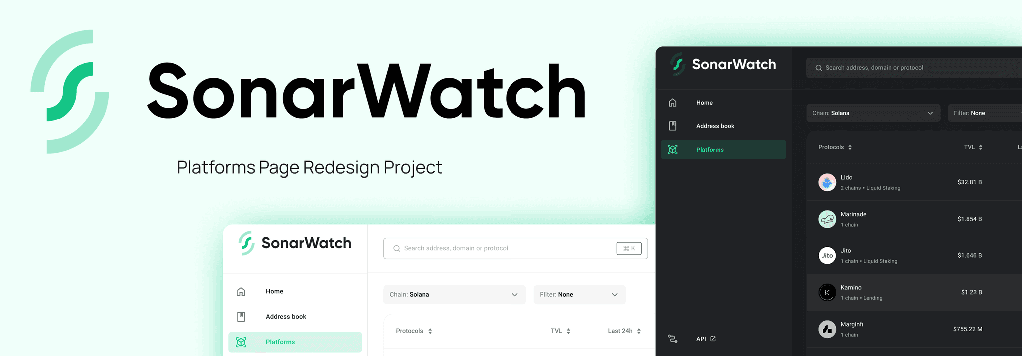 These designs embody SonarWatch’s mission of making DeFi exploration accessible, visually appealing, and highly functional. Let me know if you'd like to refine or add anything else!
